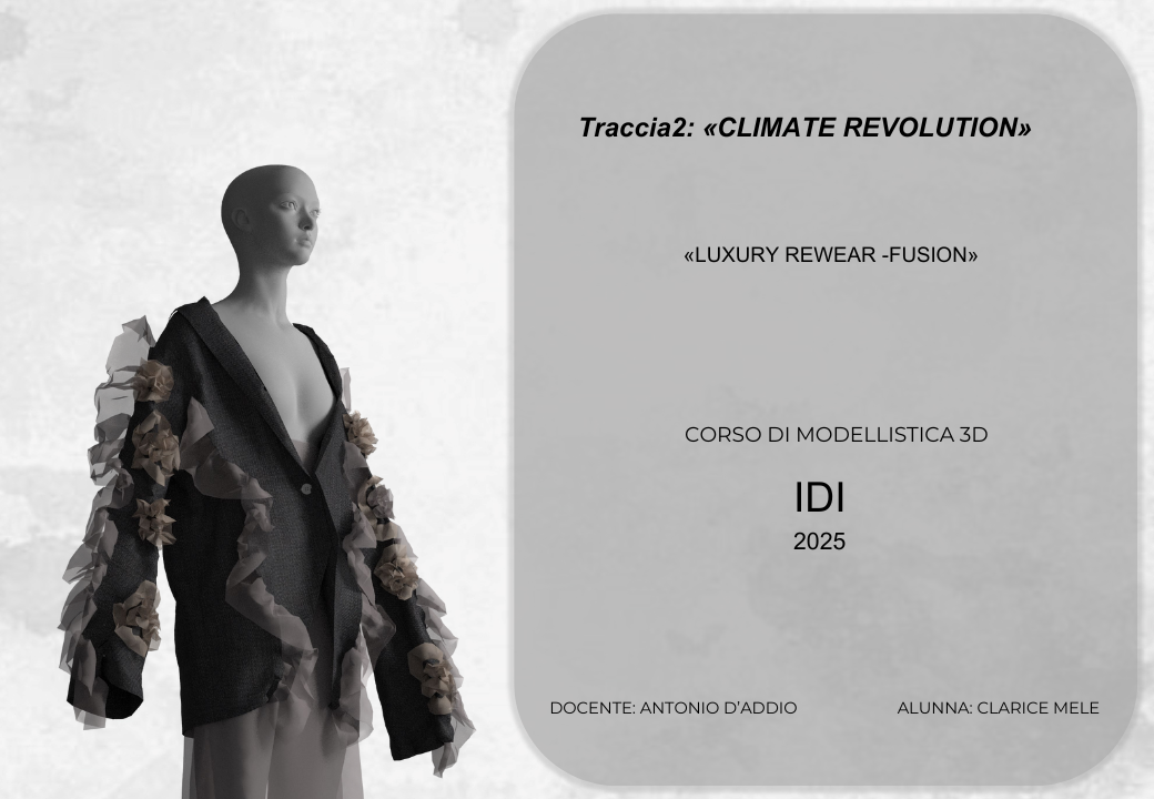 Il project work “Luxury Rewear Fusion” di Clarice Mele propone lo sviluppo di una capsule collection di moda sostenibile, presentata come un equilibrio tra riciclo creativo, lusso contemporaneo e libertà di genere.