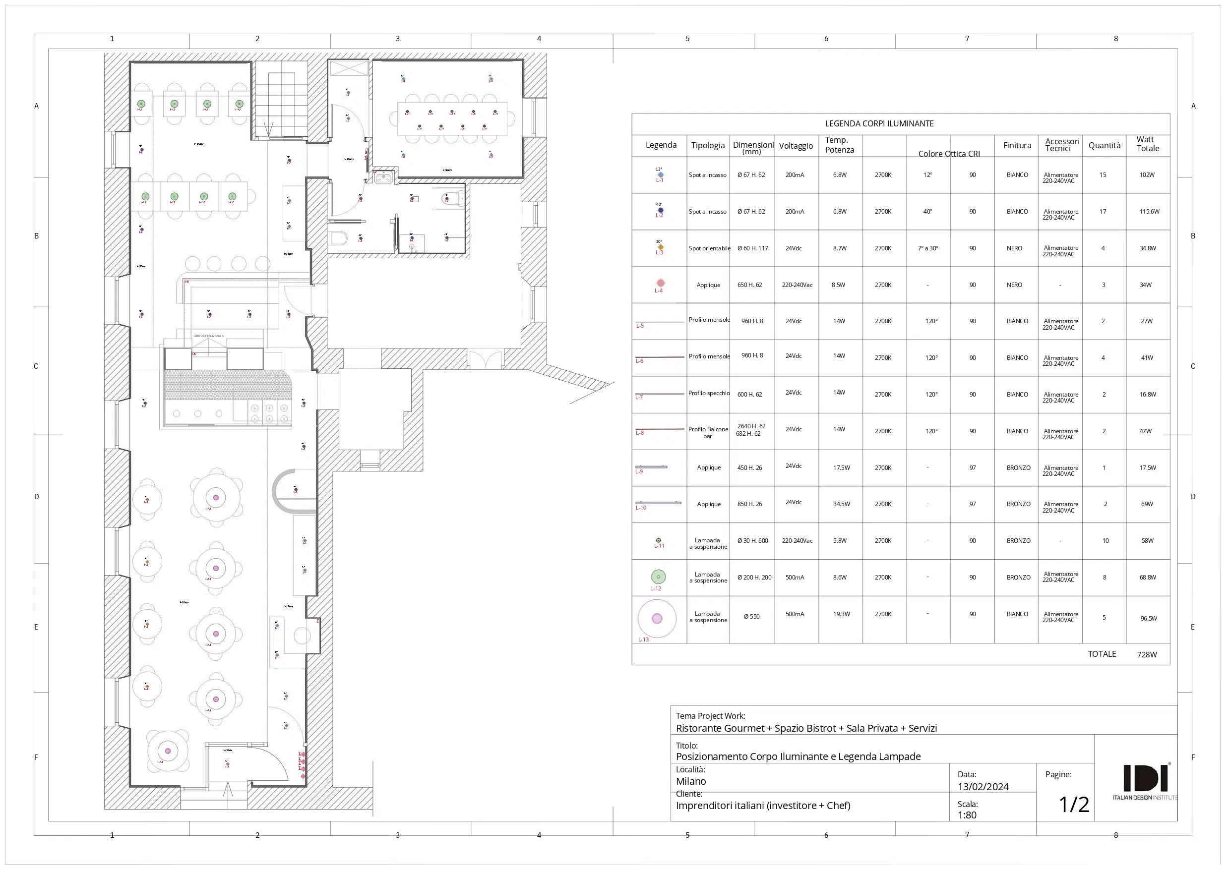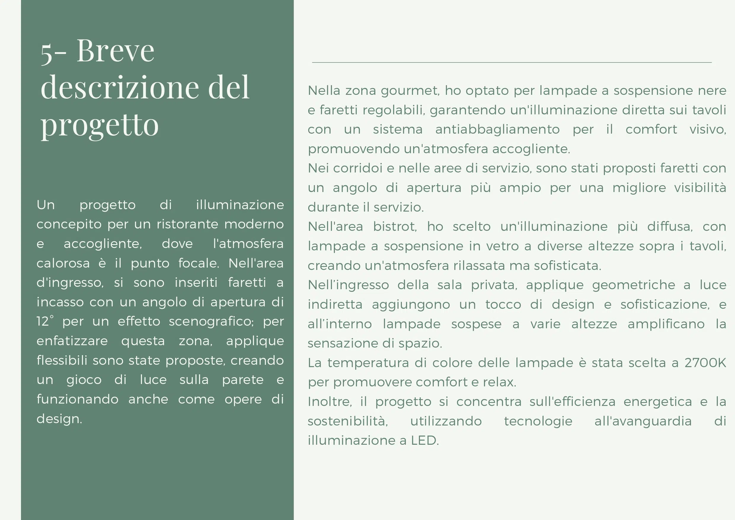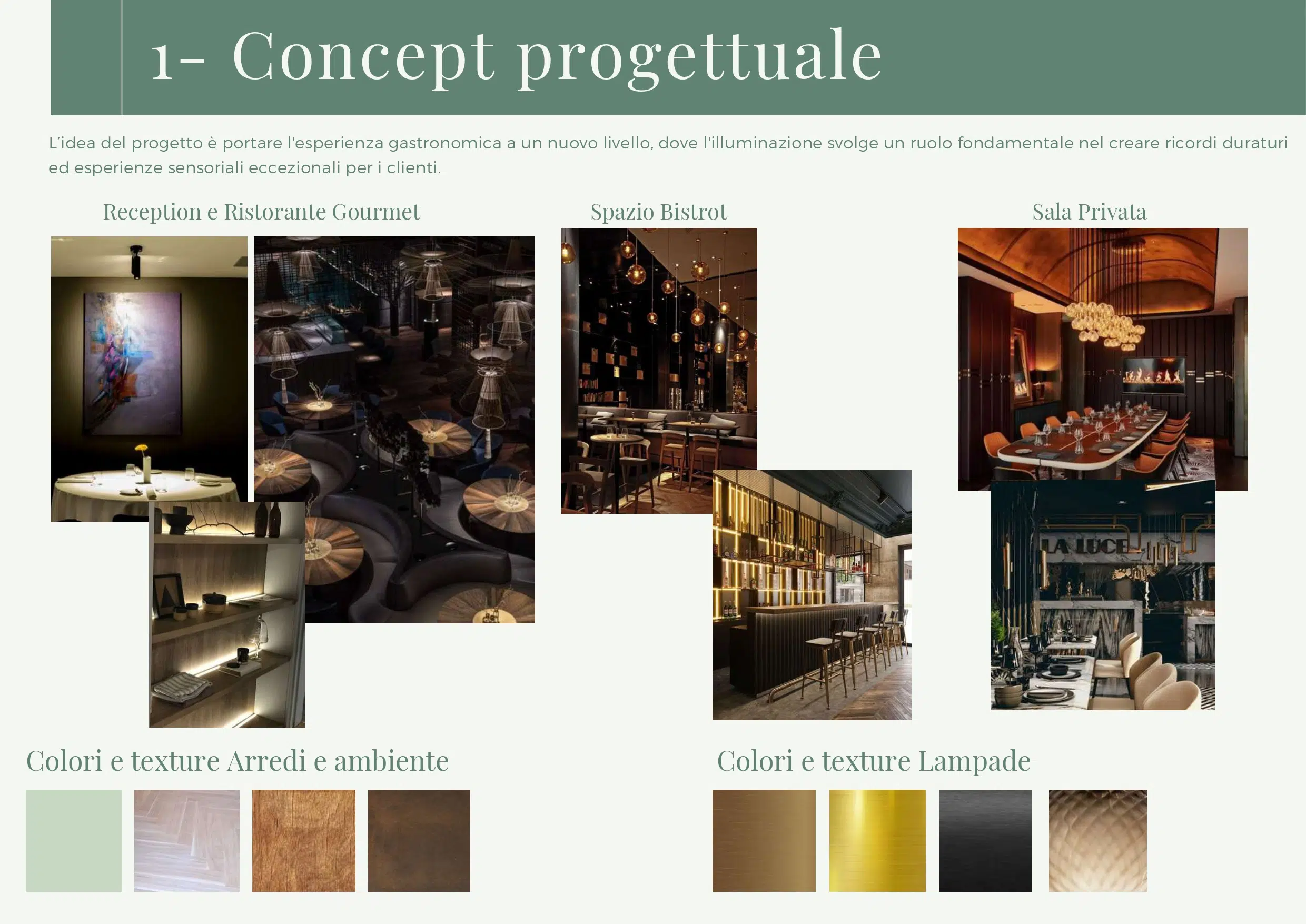 Il progetto:Ristorante Gourmet + Spazio Bistrot + Sala Privata + Servizio